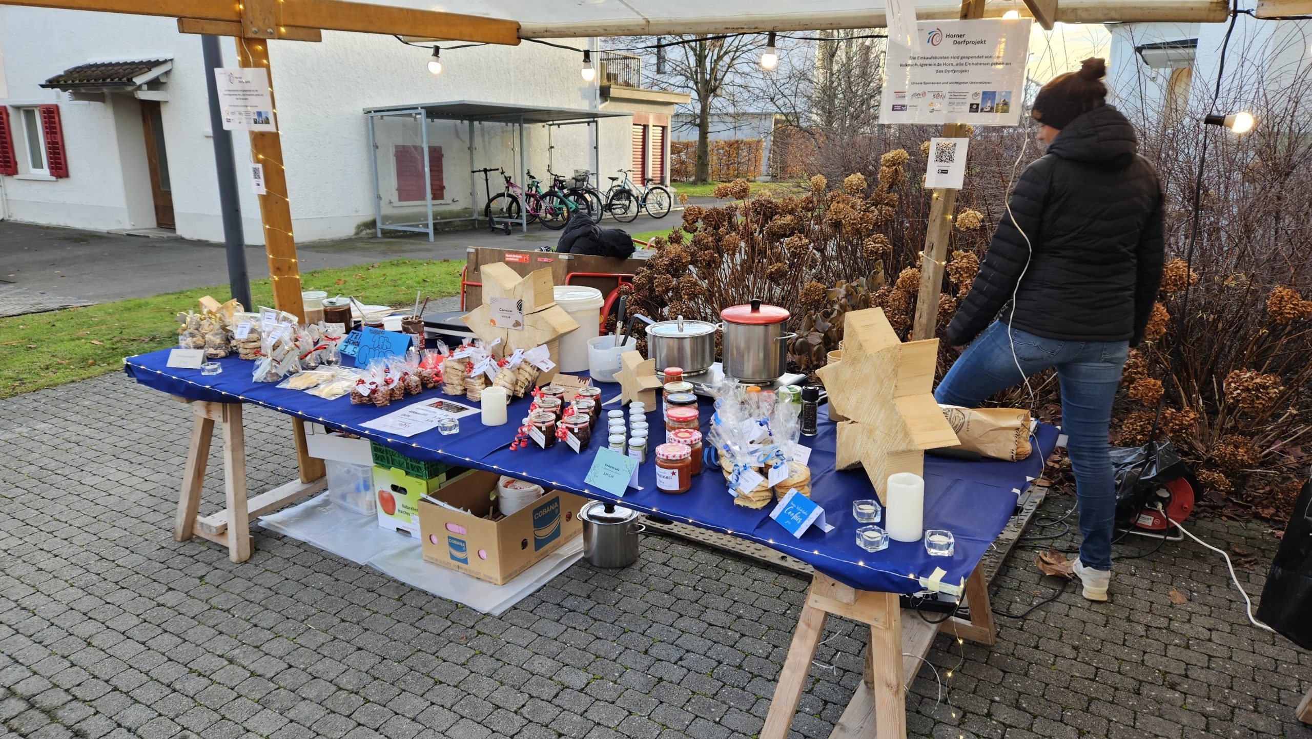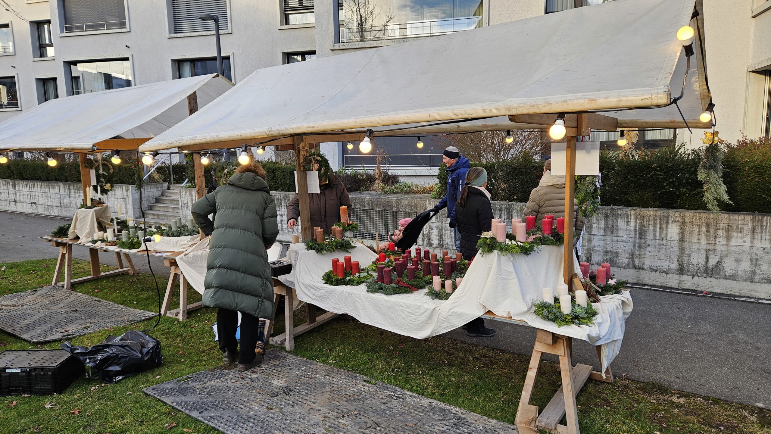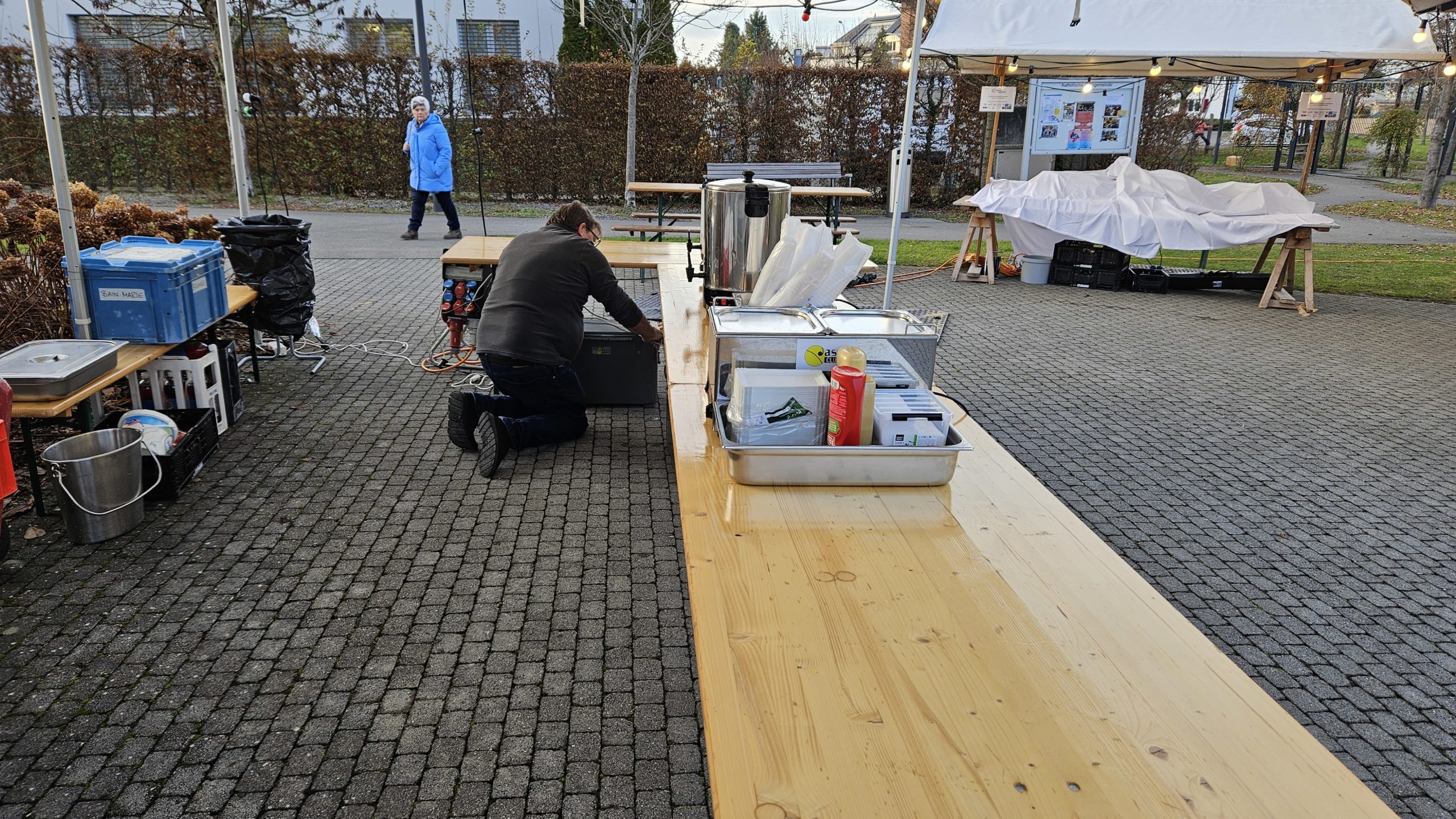 Die Vorbereitung des Adventsanlasses auf dem Dorfplatz