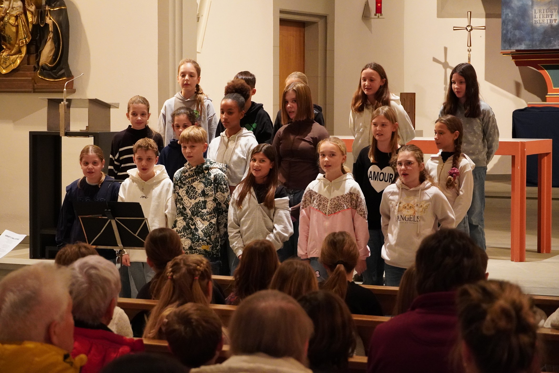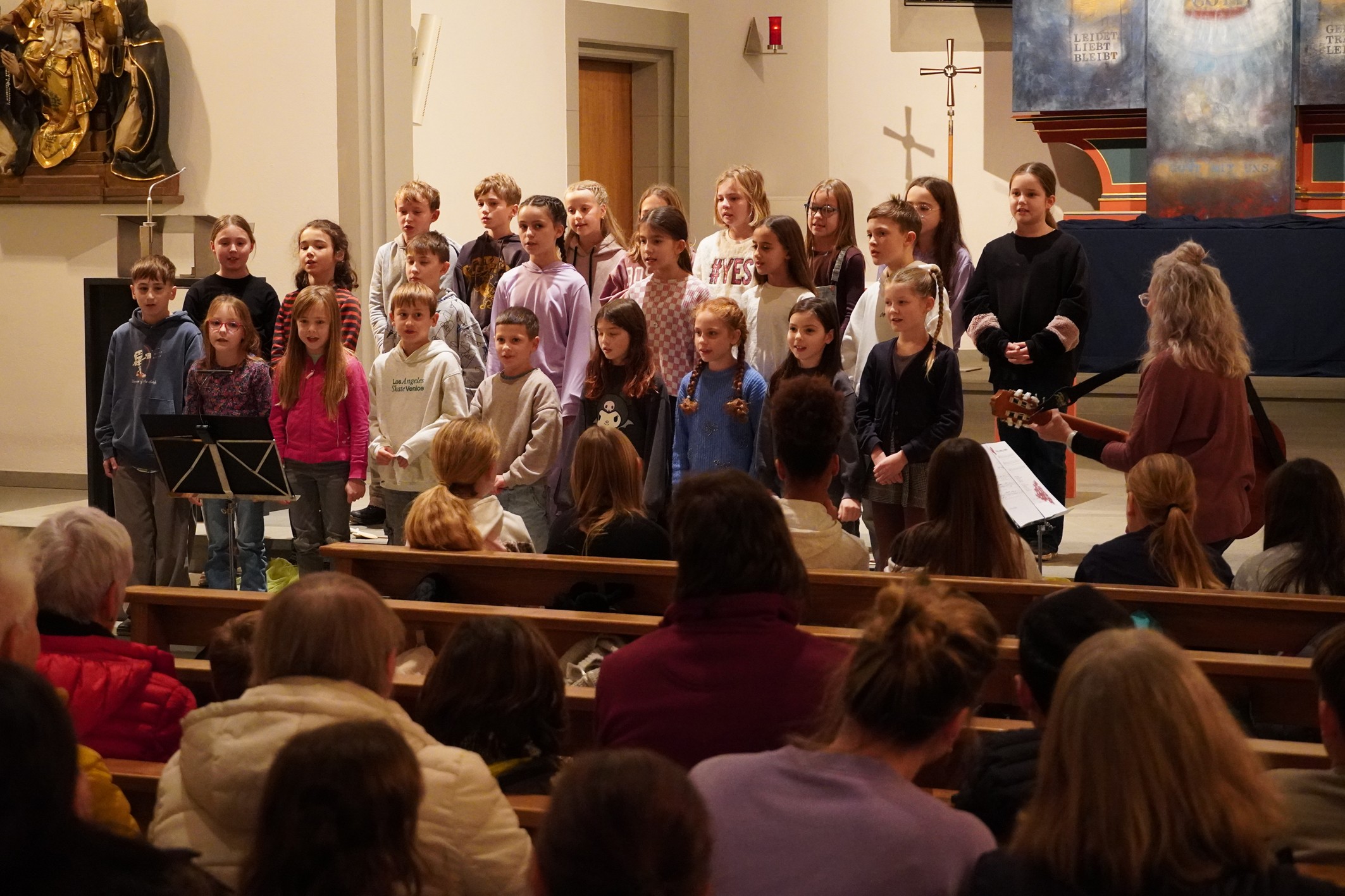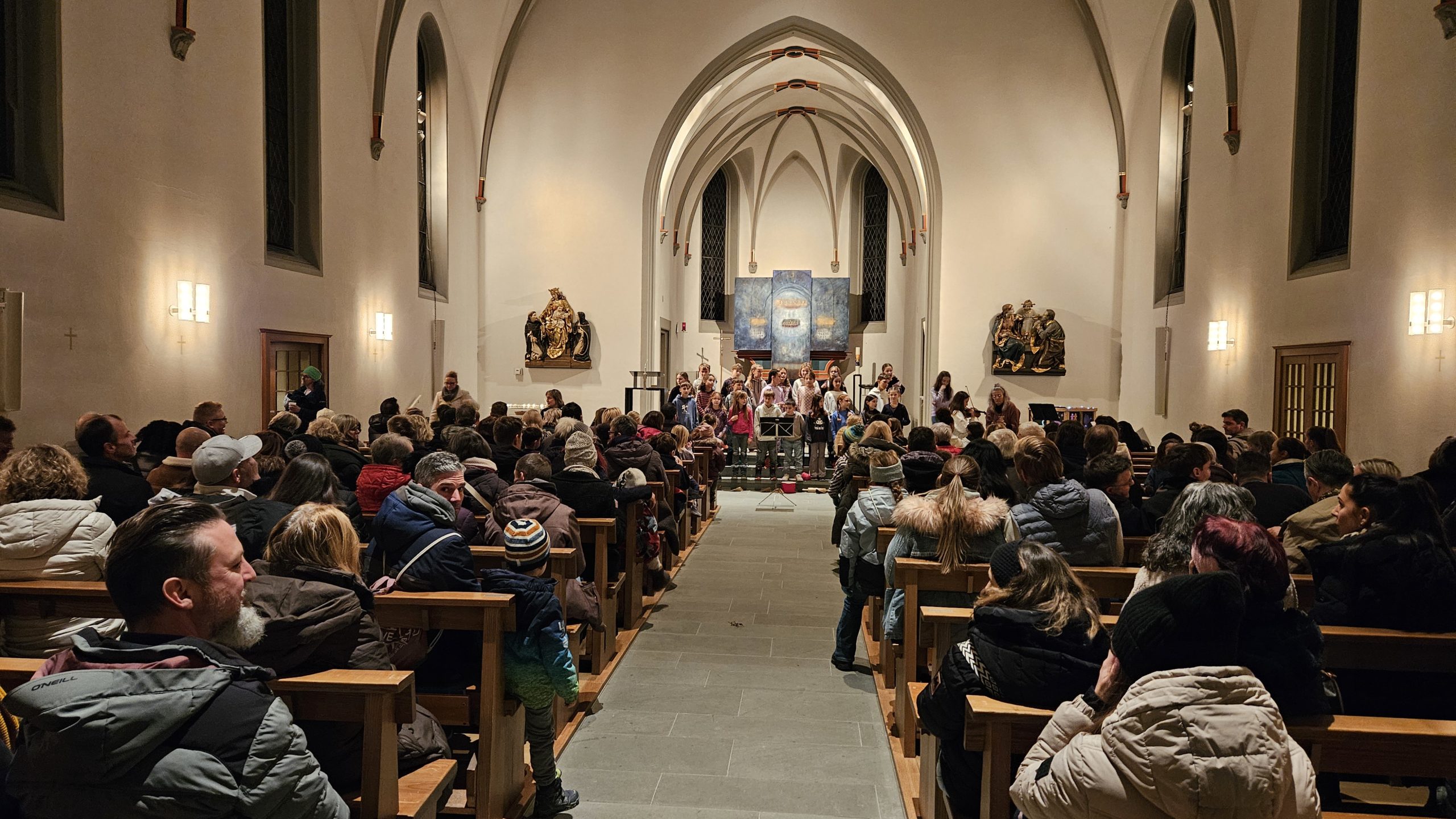 Der Kinderchor der Schule Horn in der katholischen Kirche mit vollen Rängen begeistert alt und jung